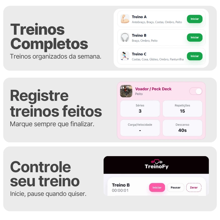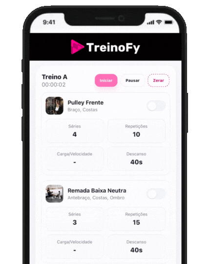 Não, montamos o seu treino com número de séries, repetições e mostramos como você vai fazer.